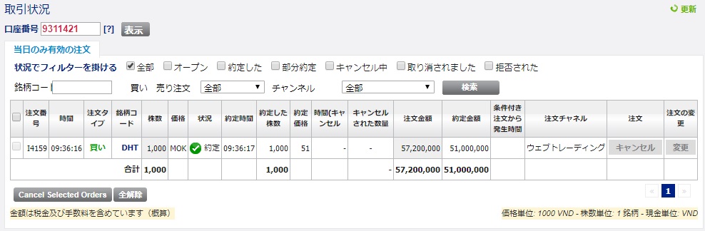 取引履歴 DHT 新規購入